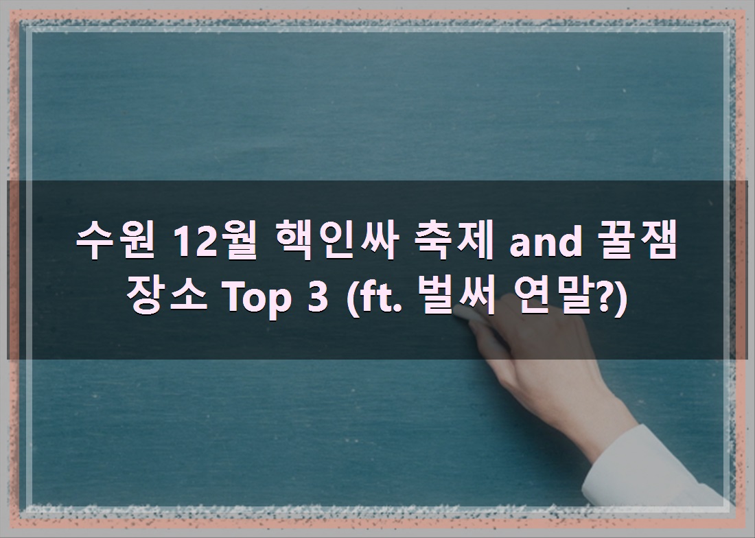 공유드린 내용은 수원 12월 핵인싸 축제 and 꿀잼 장소 Top 3 (ft. 벌써 연말?) 관련 정리 입니다. 상기 내용이 도움이 되셨길...